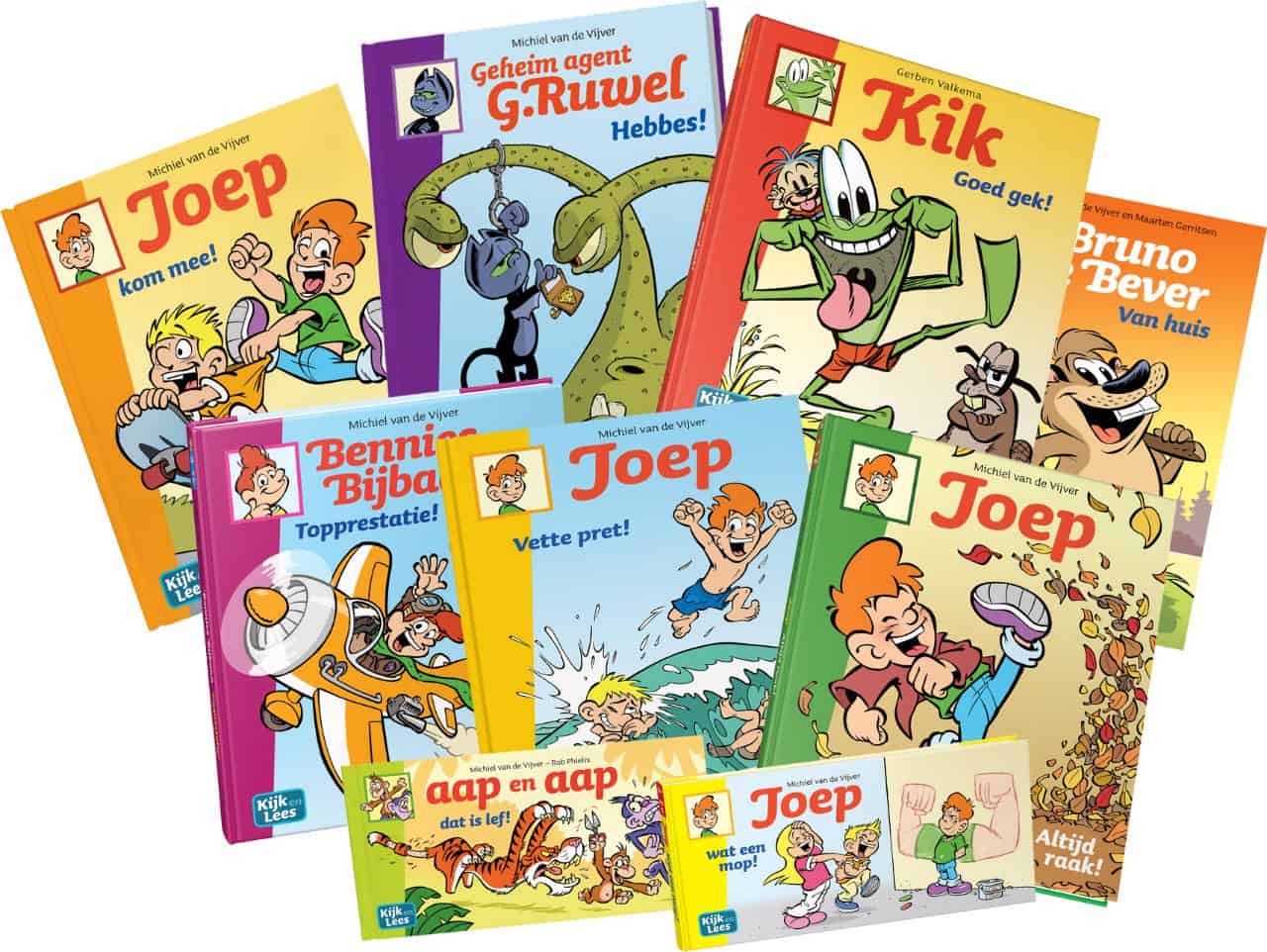 Onze boeken zijn geen ‘lesmateriaal’, maar écht leuke verhalen die kinderen zelf willen lezen. Grappig, avontuurlijk en nooit te kinderachtig. Zelfs niet op de laagste niveaus. De AVI-stripboeken van Kijk en Lees zijn speciaal voor beginnende en moeizame lezers gemaakt. Maar leesplezier staat altijd voorop! Waar veel strips nog te moeilijk zijn voor kinderen met dyslexie, maken wij lezen toegankelijk en leuk. Want goed leren lezen begint met een boek dat je echt graag pakt.