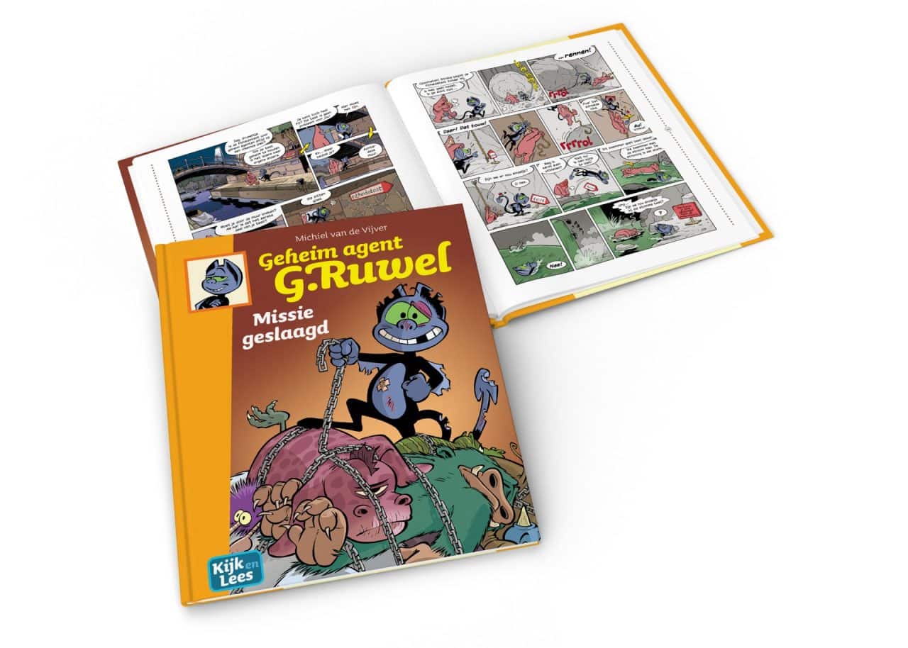 Stripboek van Geheim agent G. Ruwel op het leesniveau AVI E5. Vanaf 8 jaar.