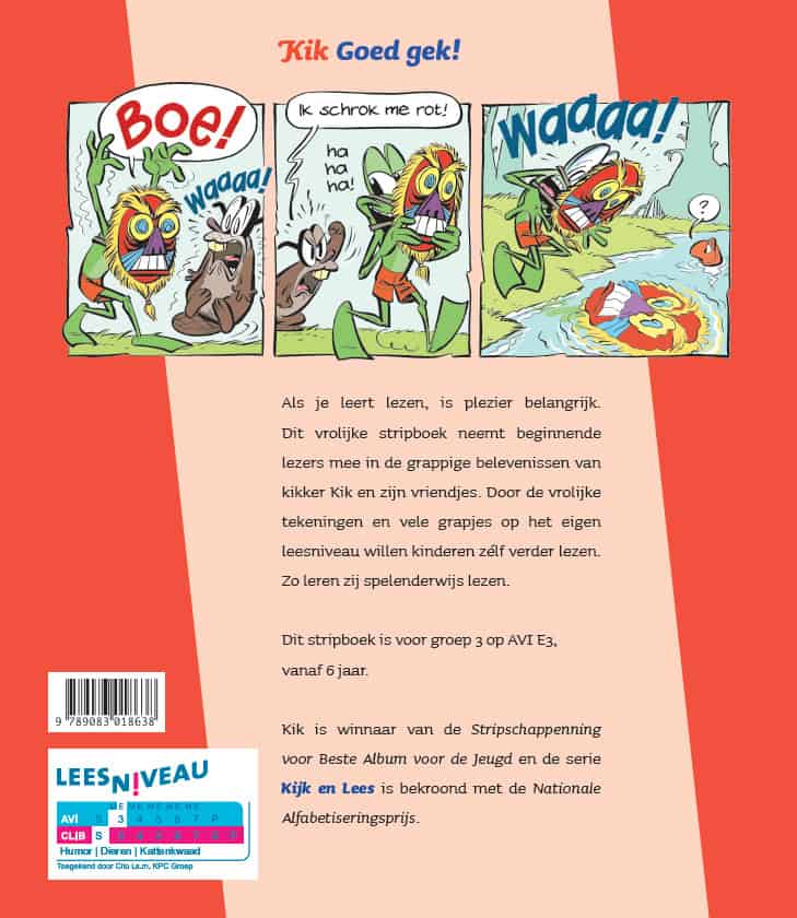 Stripboek van Kik op het leesniveau AVI E3, ca. kern 9 tot en met 12. Het boekje is voor beginnende lezers in groep 3 (eerste leerjaar). Vanaf ca. 6,5 jaar. Onderscheiden met de Stripschappenning voor Beste Jeugdalbum.