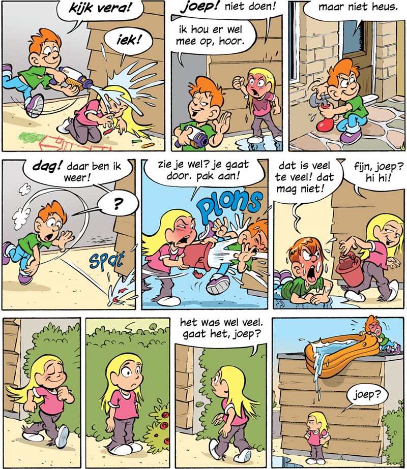 De thema’s en situaties zijn lekker herkenbaar voor kinderen. Ook de emoties van de stripfiguurtjes (her)kennen ze snel.